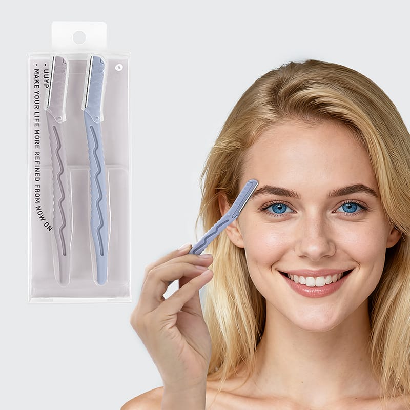Stock Portable 2Pcs Eyebrow Trimmer Razor Stainless Steel Pointed Tip Non-slip Handle Macro Blade Dermaplaning Tool Makeup Tools