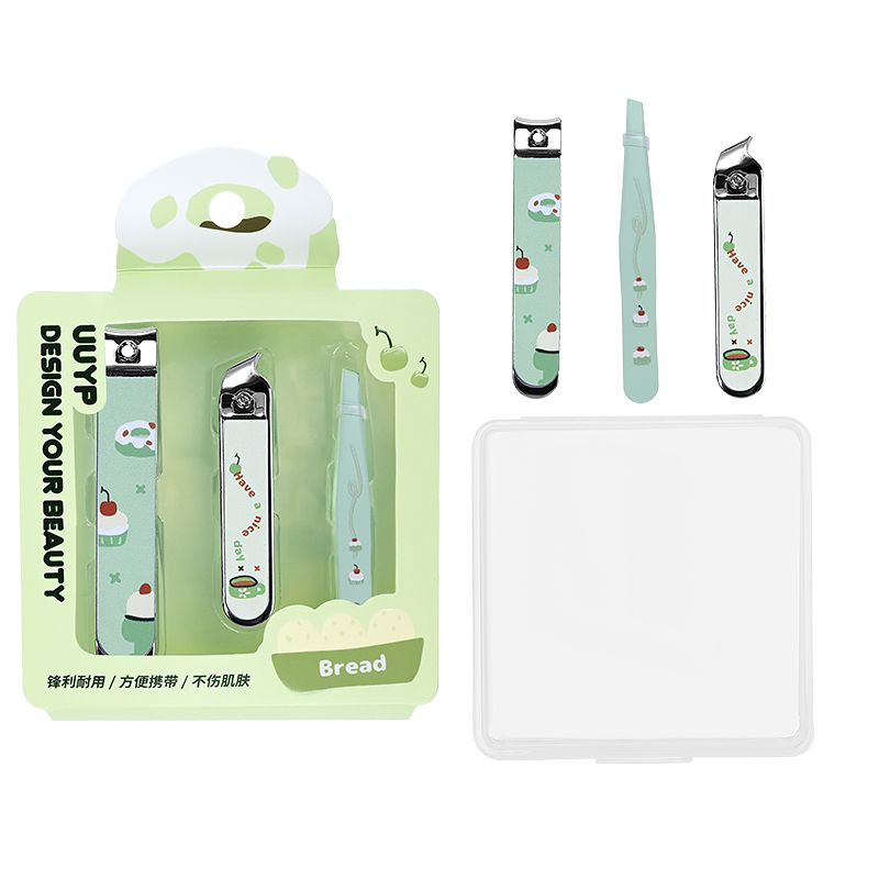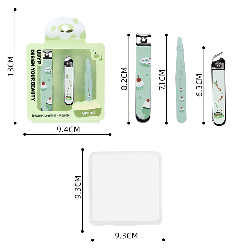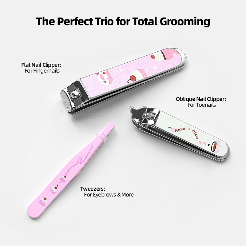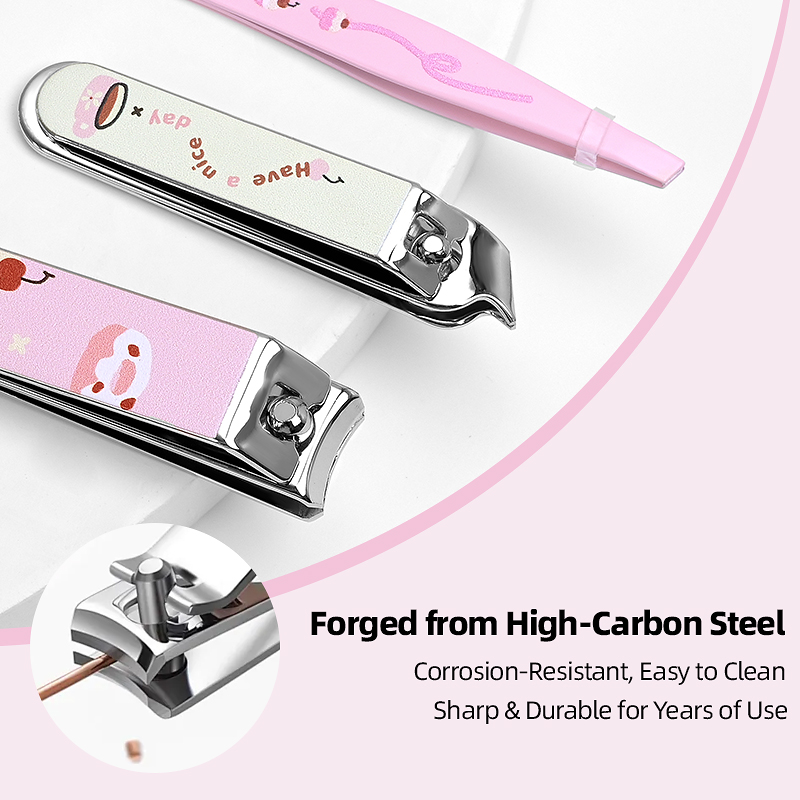 Good Package Nail Clippers Tweezers Pink Green Flat Slanted Carbon Steel Cartoon Print Nail Cutter Includes Dust Box