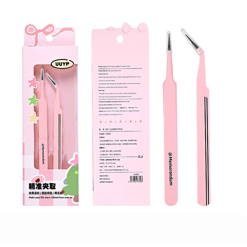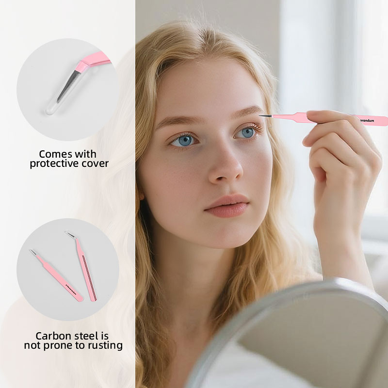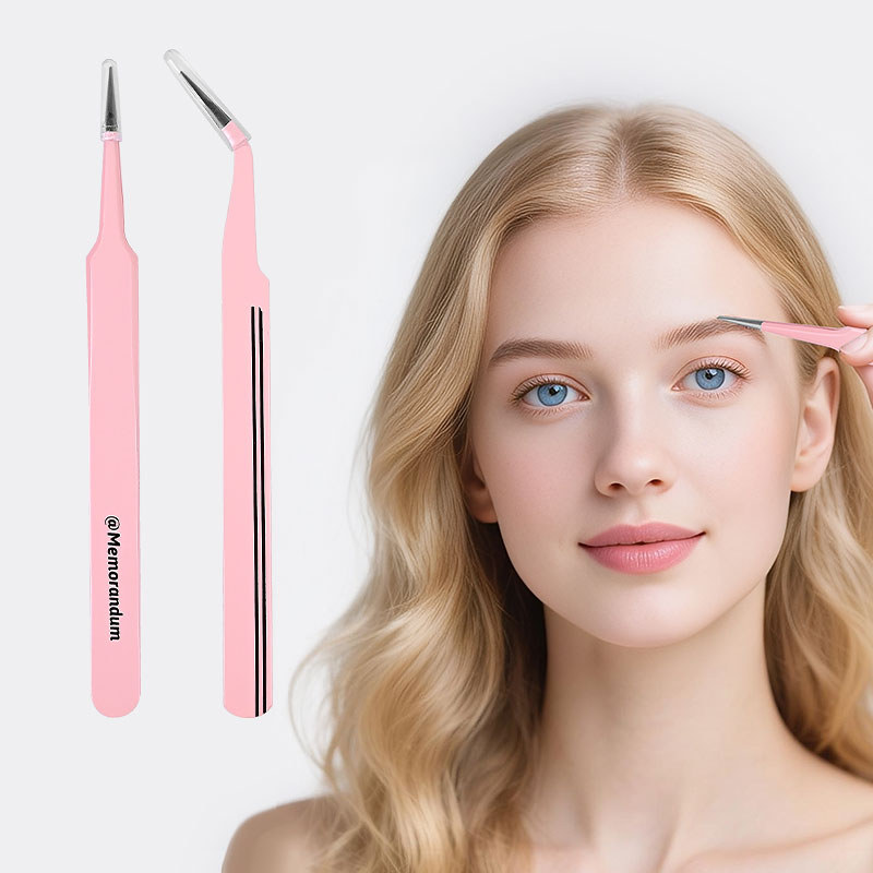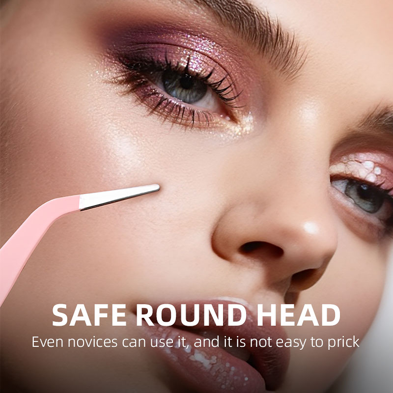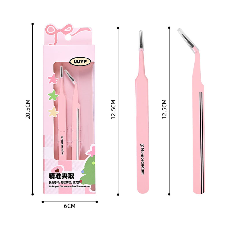 New Design Lash Tweezers Fiber Tip Tweezer Pink Straight Curved Tight Jaws Face Hair Removal 2Pcs Eyelash Extension Tweezers