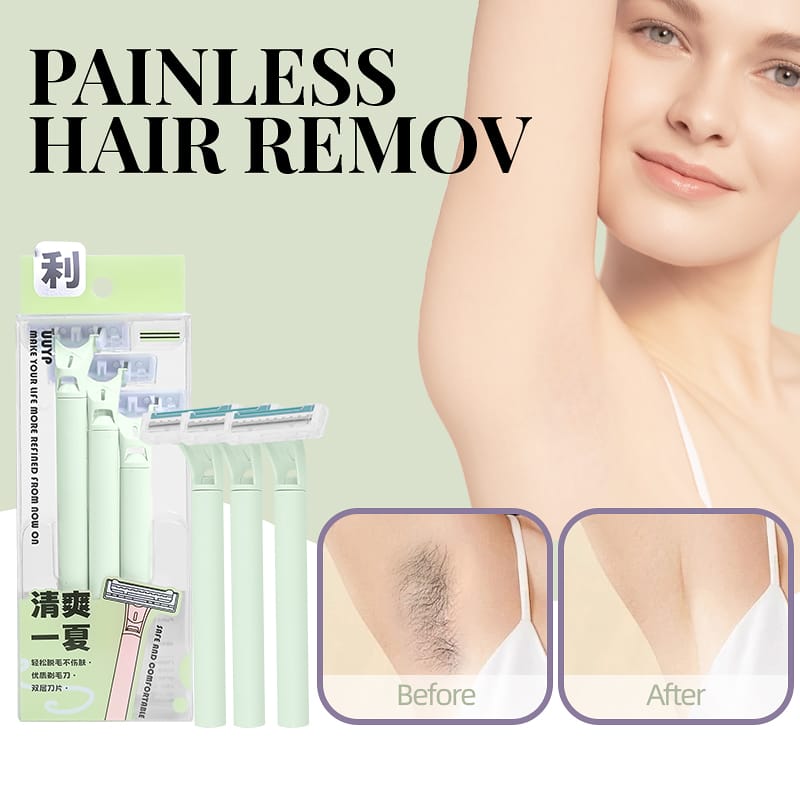 Women’s Reusable 3-Piece Stainless Steel Facial Hair Razor Set Twin Blade Safety Razor and Razor Holder Rechargeable Type