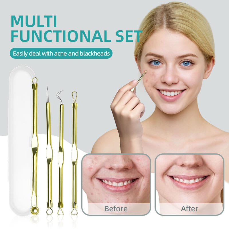 Hot Sale Stainless Steel 4Pcs Pimple Comedone Extractor Kit Acne Blackhead Remover Needle Tools Set for Scar Face Skin Blemish