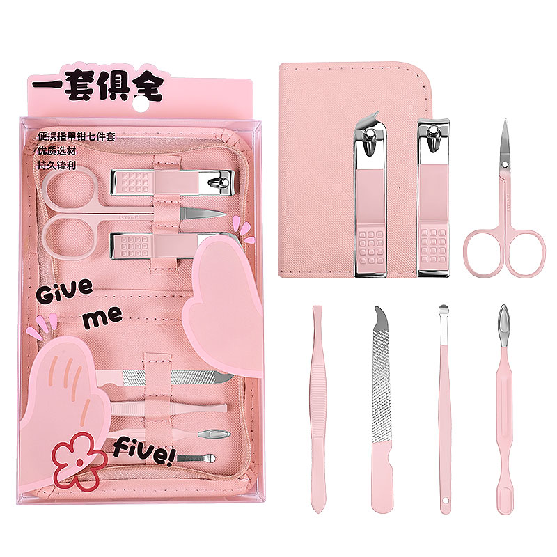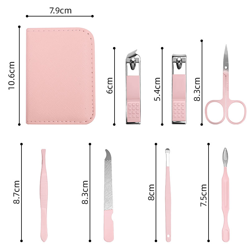 New Arrival Manicure Set Portable 8Pcs Pink Pedicure Kit Nail Clipper Cuticle Pusher Nail File with Leather case