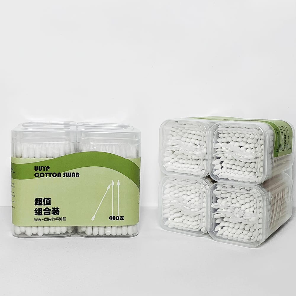 400pcs High Quality Bamboo Cotton Buds Biodegradable Q Tip White Swab Earbuds Ear Bud Cleaning Sticks