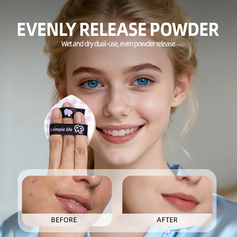 New Design Loose Powder Sponge Makeup Puff Soft Comfortable Spot Customizable Purple Double Ribbon Drop Water Drop Shape